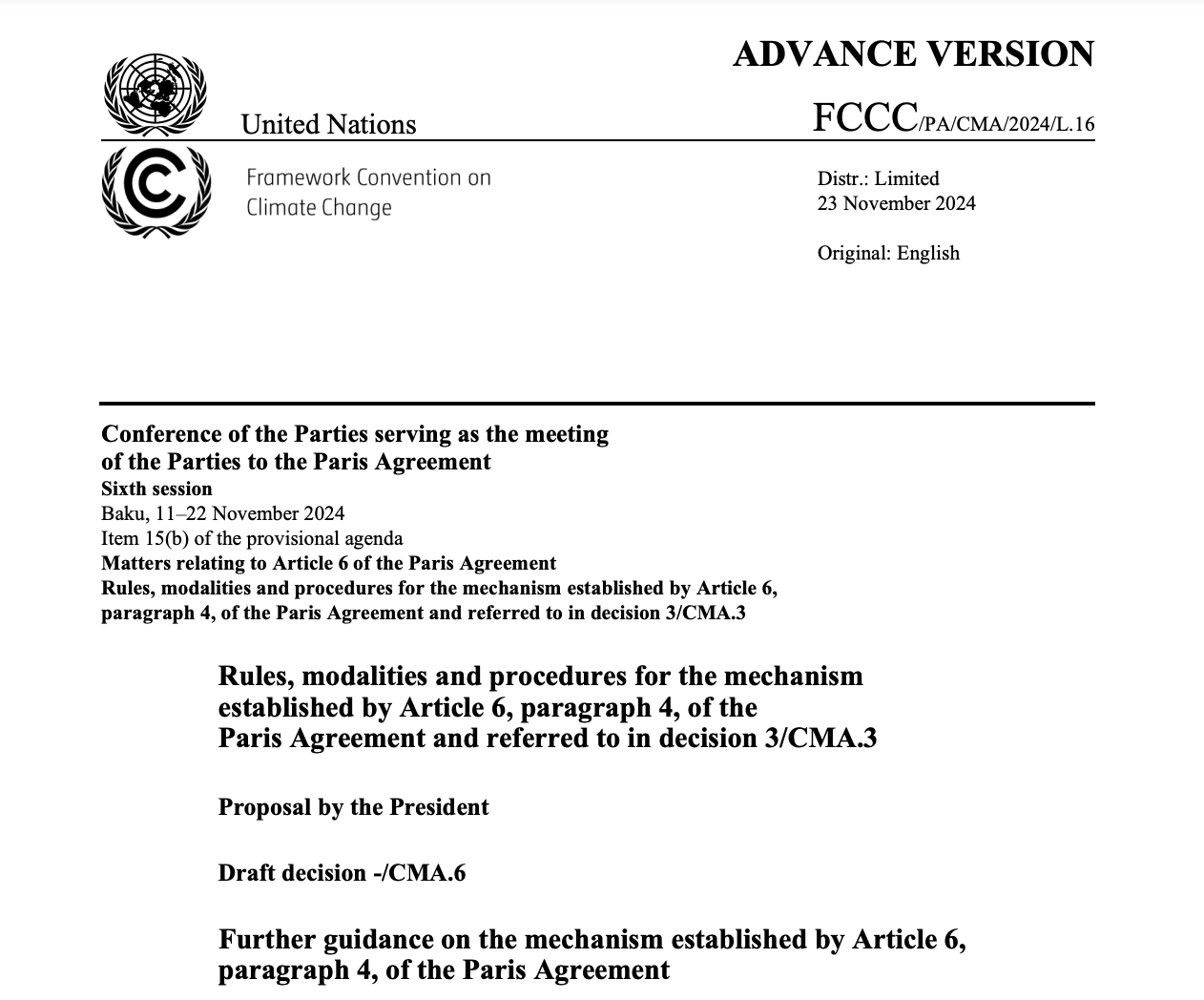During a pre-COP29 meeting in October 2024, the Article 6.4 Supervisory Body had already approved two standards: