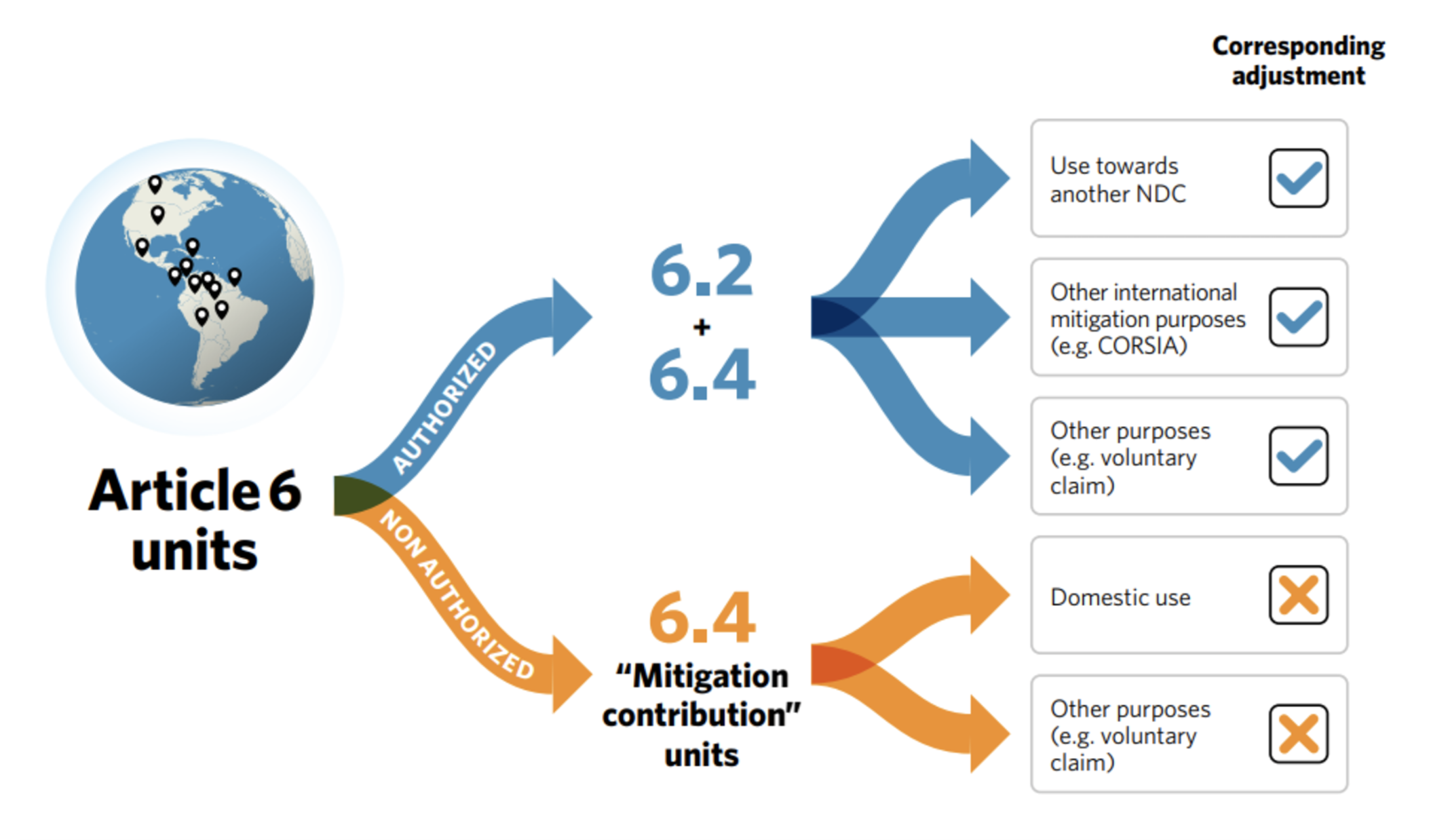 Introduced by Article 6.3, a corresponding adjustment is necessary under Articles 6.2 and 6.4 for all units approved by the host country, including those originating from sectors not covered by an NDC.