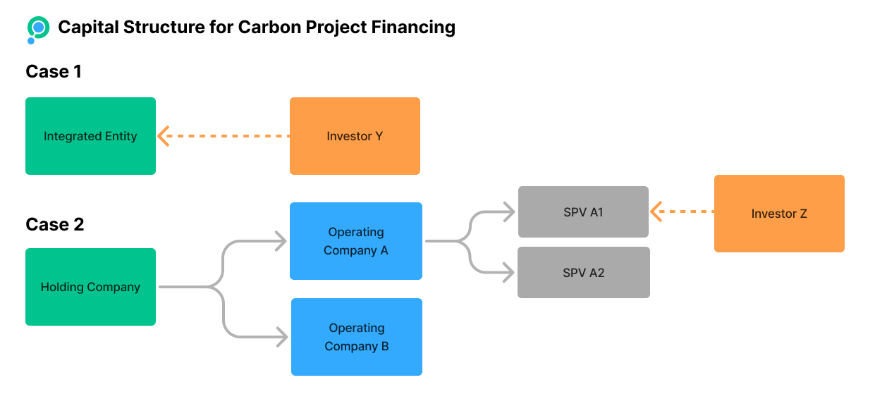 in cases where the project developer's organization and its carbon project(s) are essentially one and the same entity, equity is raised directly at this overarching organizational level. Think about a novel Carbon Removal startup financing its first project(s).