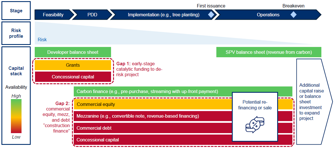 Carbon project developers strategically 'stack' various types of funding throughout their project's journey.