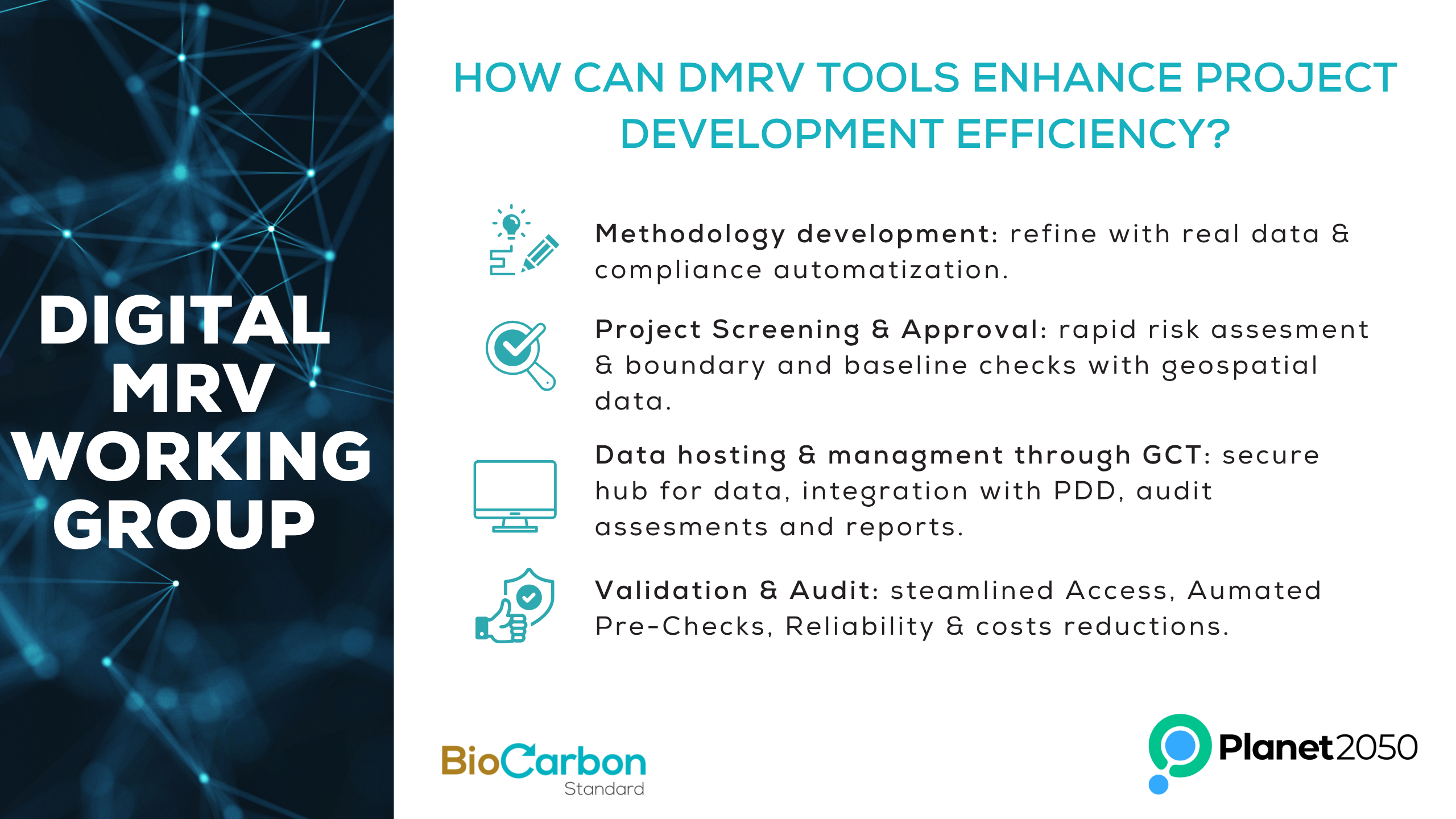 We had previously announced the launch of the dMRV Working Group with BioCarbon, with Planet2050 as organizer and facilitator.