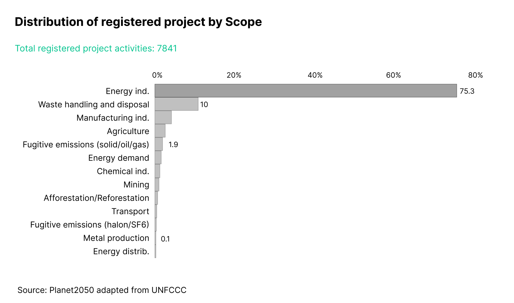 Die folgende Grafik zeigt die Verteilung der Projekte nach Sektor im Rahmen des CDM.