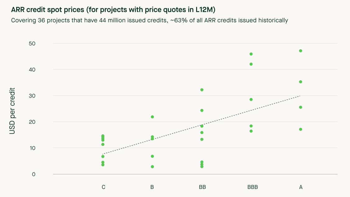 Laut dem „State of Carbon Credits 2024“-Bericht von Sylvera zahlen Käufer im Durchschnitt etwa 5 US-Dollar mehr pro Tonne für höher bewertete Aufforstungsprojekte: