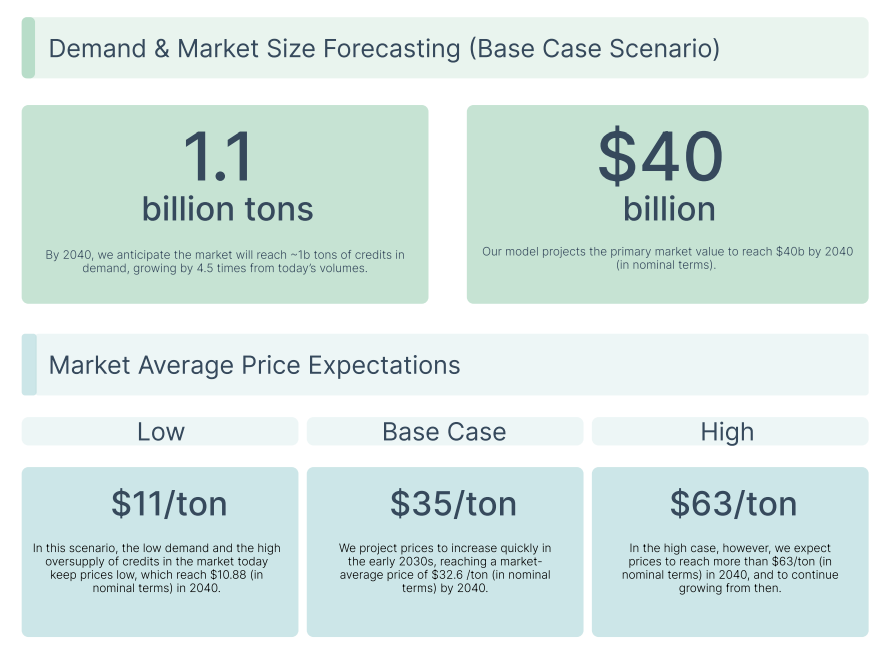 AlliedOffset veröffentlicht regelmäßig Marktprognosen, die jüngste, im März 2025 erschienene Ausgabe (2025 Forecast Report), geht davon aus, dass die Preise bis 2030 35 USD erreichen.